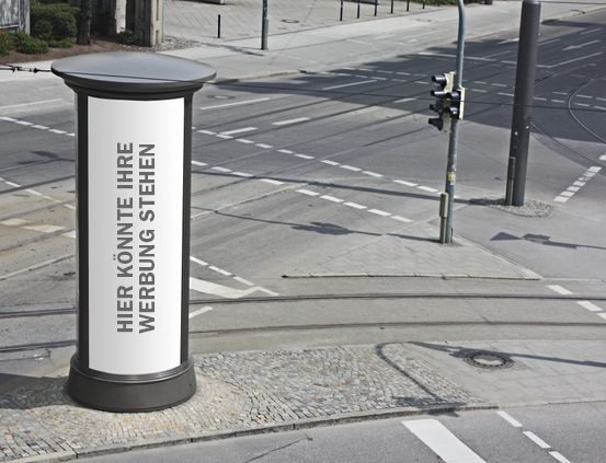 Häufig werden Ganzsäulen mit drei Plakaten (6/1 Bogen) beklebt, damit die Werbebotschaft von allen Richtungen gut erkennbar ist.